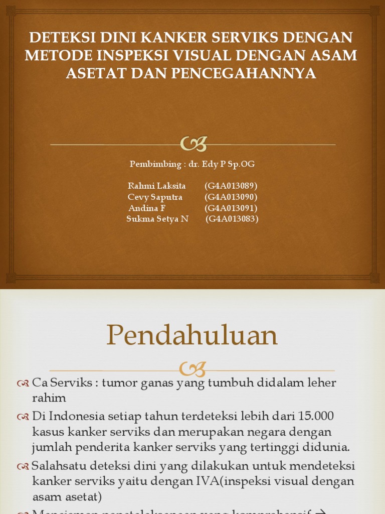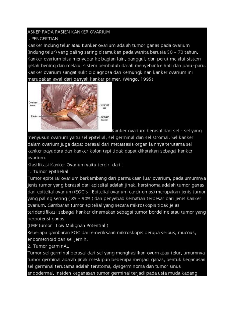 Report askep kanker serviks please fill this form, we will try to respond as soon as possible. Kanker serviks adalah penyakit akibat tumor ganas pada daerah mulut rahim sebagai akibat dari adanya pertumbuhan jaringan yang tidak terkontrol dan merusak jaringan normal di sekitarnya (fkui, 1990; Share & embed askep kanker serviks please copy and paste this embed script to where you want to embed. Kanker serviks adalah kanker yang terjadi pada serviks atau leher rahim. 60 tahun / 54 tahun 3. Prevalensi kanker serviks merupakan yang tertinggi di indonesia yaitu 0,8% atau sekitar 98.692 orang. Kanker ini biasanya menyerang wanita yang pernah atau sedang berada dalam status sexually active. Kematian akibat kanker serviks yaitu 7.493 orang, sedangkan untuk asia indonesia berada pada urutan keempat dengan jumlah penderita sebanyak 17,3 per 100.000 perempuan pertahun. Jumlah kehamilan dan partus kanker serviks terbanyak dijumpai pada wanita yang sering partus. Description download askep kanker serviks comments. Dari 13 pusat patologi anatomi di indonesia tahun 1983 menempatkan kanker serviks sebagai kanker terbanyak,laporan dari bagian patologi anatomi fk.unair (1993) selama 4 tahun ditemukan 2304 kanker serviks dan hanya 22 kasus (0,12 %) in situ jadi lebih dari 99 % sudah pada stadium invasif. Send link to edit together this prezi using prezi meeting learn more: Alat pencernaan terganggu dan susah menelan.