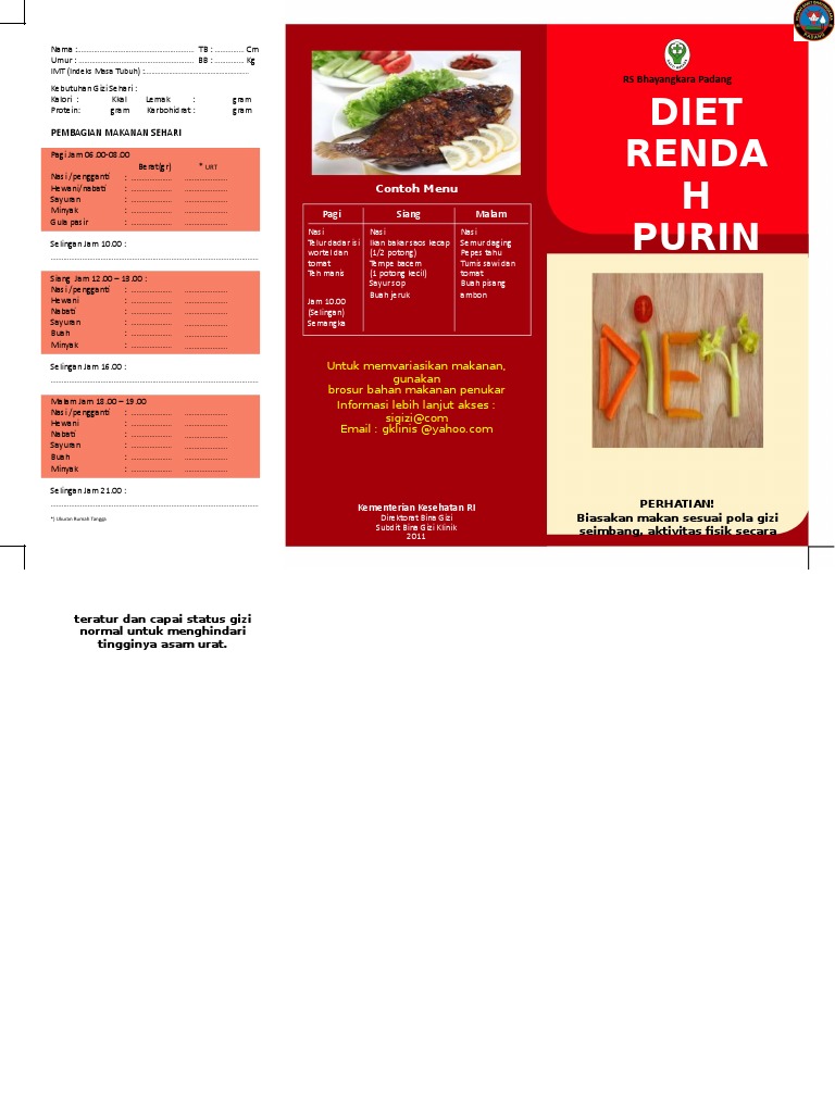 Kedua jenis makanan ini mempunyai kandungan serat tinggi, sehingga membuat siapa saja yang. Jika anda punya dalmatian atau bulldog inggris, mungkin bijaksana untuk menempatkan hewan peliharaan anda pada diet rendah purin sebagai tindakan pencegahan. Purin adalah protein yang termasuk dalam golongan nukleo protein. Dalam jumlah yang tidak berlebihan: Diet rendah purin apa sich? Program pembentukan badan ideal dan kontrol diabetes program pembentukan badan ideal ini merupakan. Tetap konsultasikan pada dokter mengenai kombinasi terapi dan diet yang tepat bagi anda. Diet ini juga membantu anda untuk menikmati sayuran dan buah dibandingkan daging berlemak. Diet rendah karbo , diet tinggi protein rendah karbohidrat , menu rendah kalori untuk diet , diet rendah glycemic indeks, menu diet rendah kolesterol , makanan rendah lemak untuk diet. Peningkatan kadar asam urat yang berlebihan dalam darah, dapat menyebabkan penimbunan asam urat pada. Setiap seseorang mempunyai asam urat dalam tubuh tetapi kalau di produksi berlebih. Menu diet rendah kalori 7 hari di bawah 50 ribu untuk menurunkan berat badan | day 4. Diet rendah purin adalah hal yang bagus bagi siapa saja yang butuh pertolongan dalam menangani serangan asam urat atau batu ginjal.